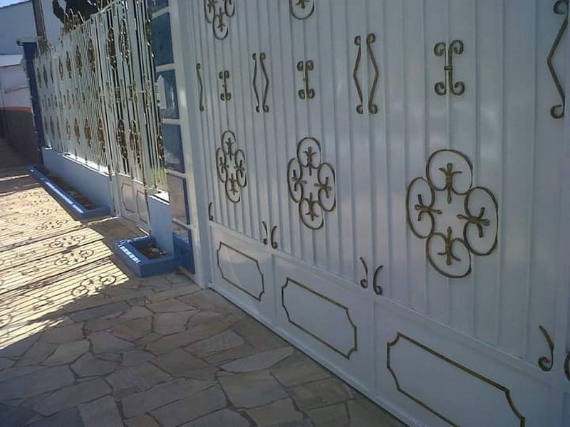 Massa corrida, acrílica, portões.
